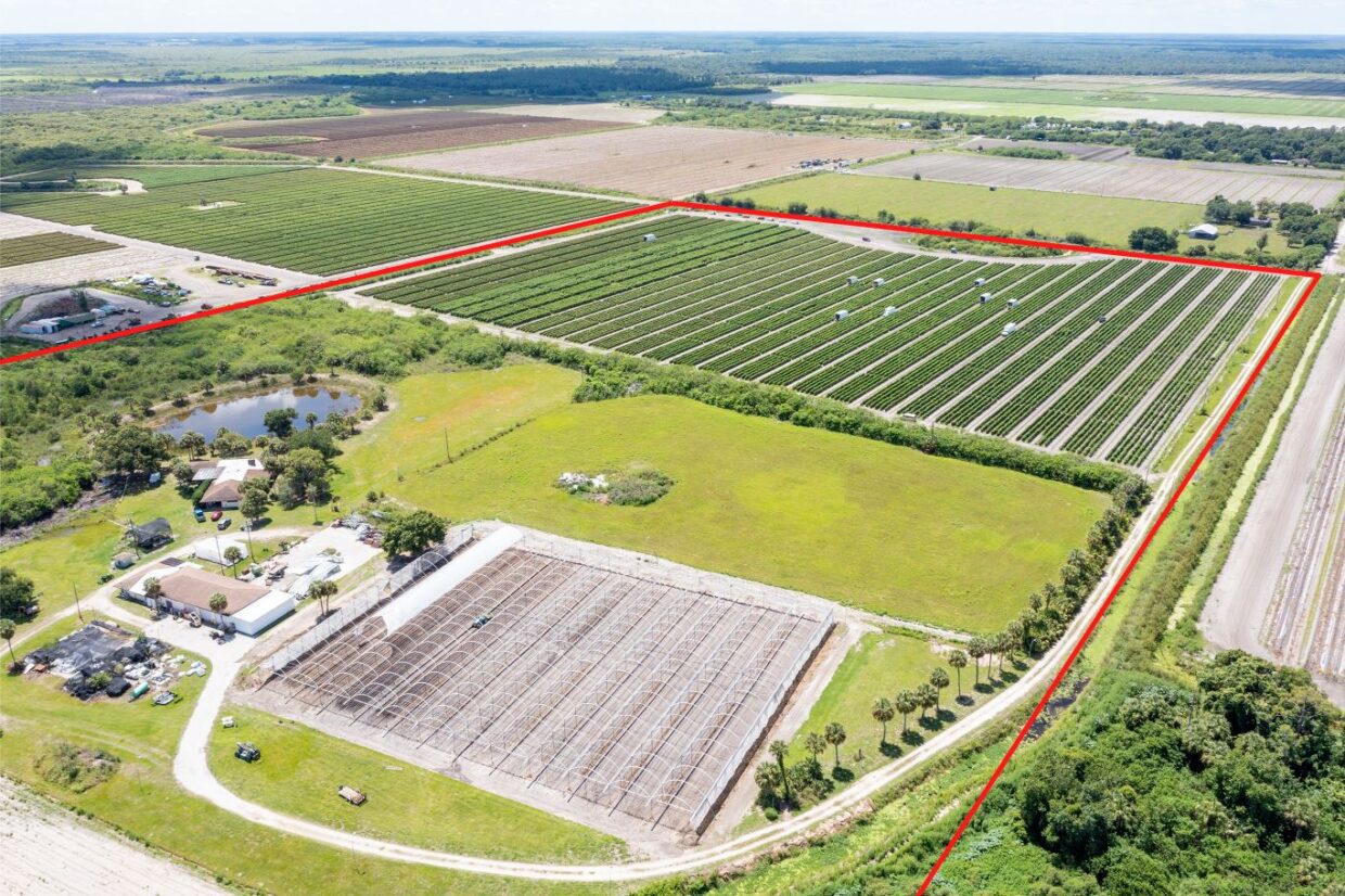 78-acres of Immokalee black gold (the most fertile soil in Florida). Three permitted wells. Computerized water filtration. 4,500 sq. ft. of air-conditioned drying facility and warehousing. 1,000 sq. ft. of cooler and warehousing. Three-phase electricity. Loading Dock. 4 bedroom/2-bathroom home. Manager’s apartment. Office.